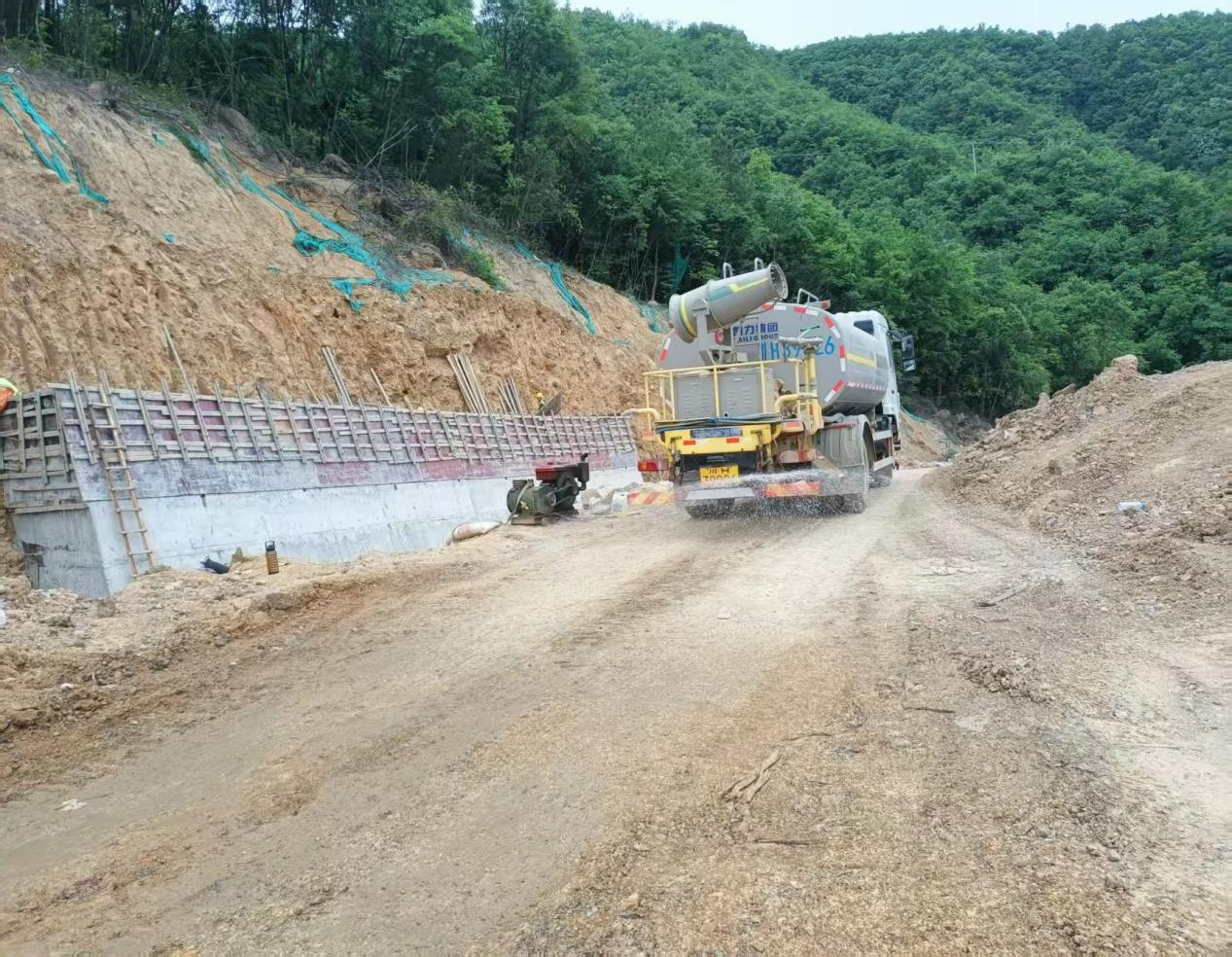 各项目通过挂网喷播植草、循环洒水降尘、雾炮机除尘、混凝土硬化、封闭围挡运输等方式开展扬尘治理整改工作。