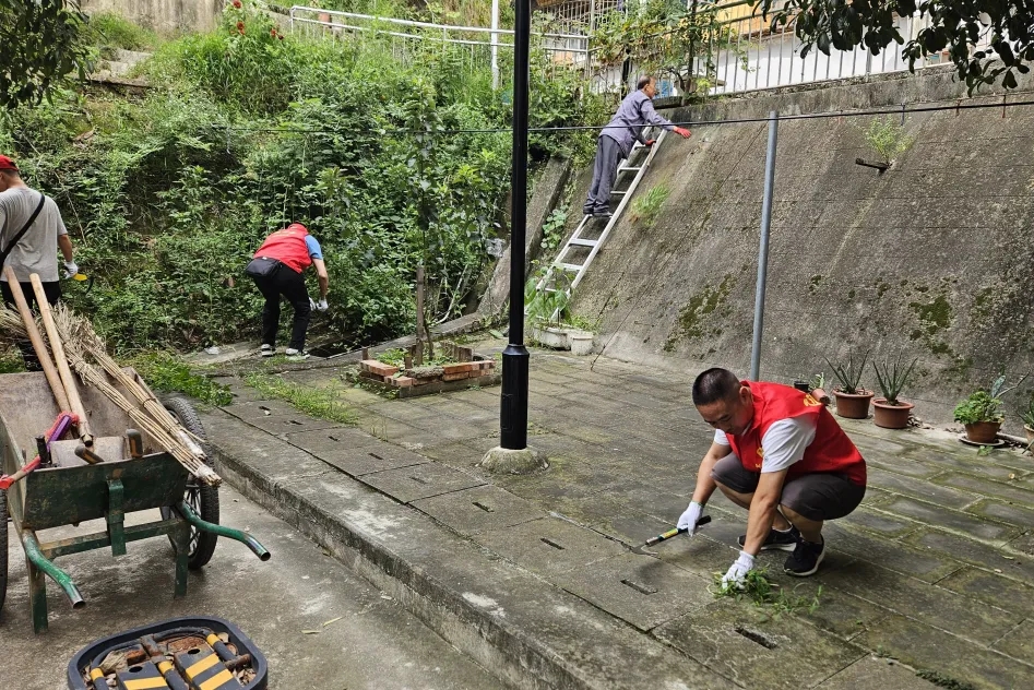 活动当天,党员同志们来到橄榄园社区的西铁小区,开展环境卫生整治行动,大家纷纷拿起镰刀,去除砖缝中的杂草,以改善群众的居住环境,提升居民生活幸福感。